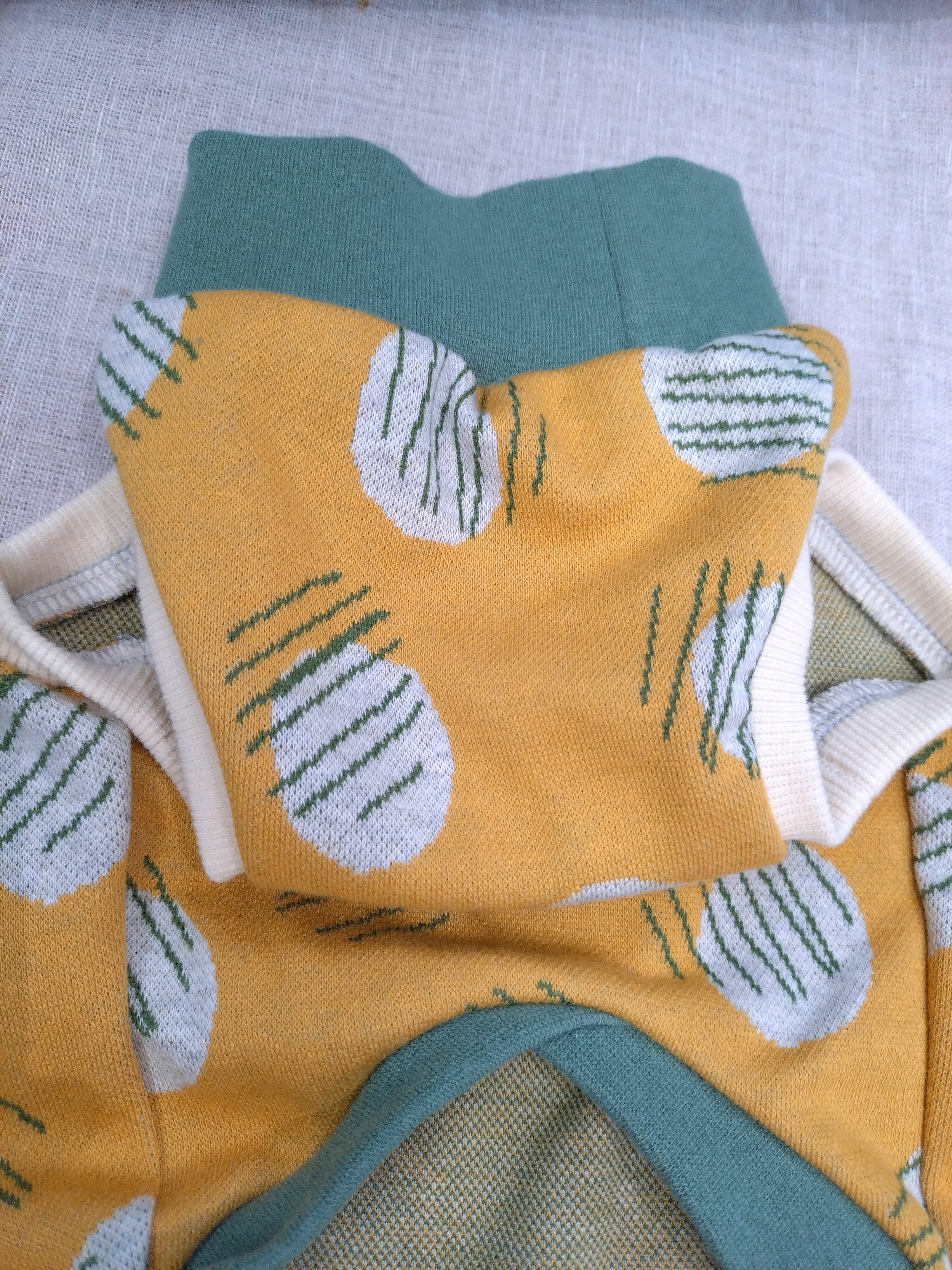 タートルネック ドット幾何学柄 ジャガードタンクトップ イエローオレンジ✕くすみグリーン