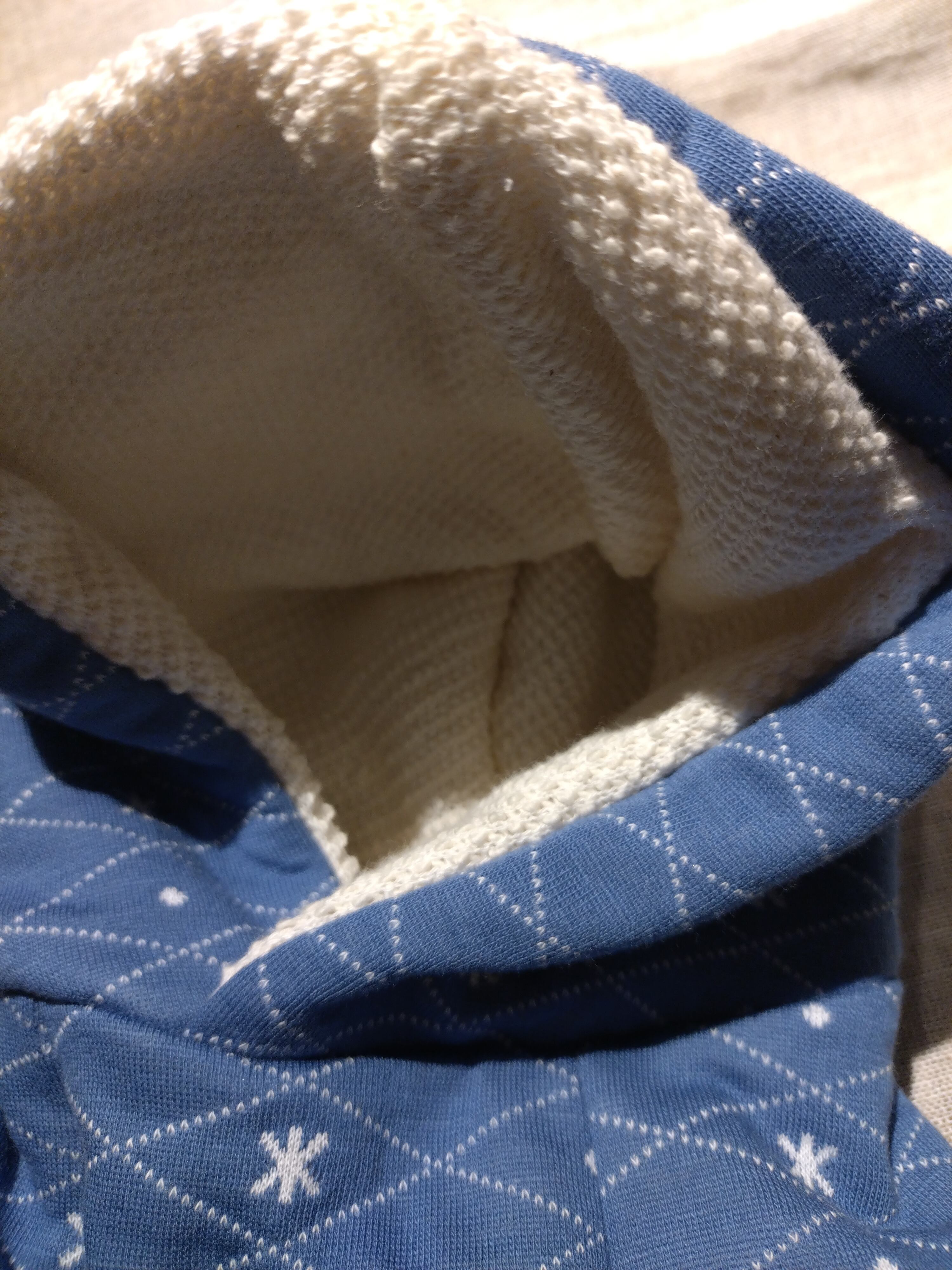 可愛い 雪柄のパーカー出来ました! 柔らかい薄手のキルト生地なので 手触り良く暖かく、 着せやすいですよ〜
