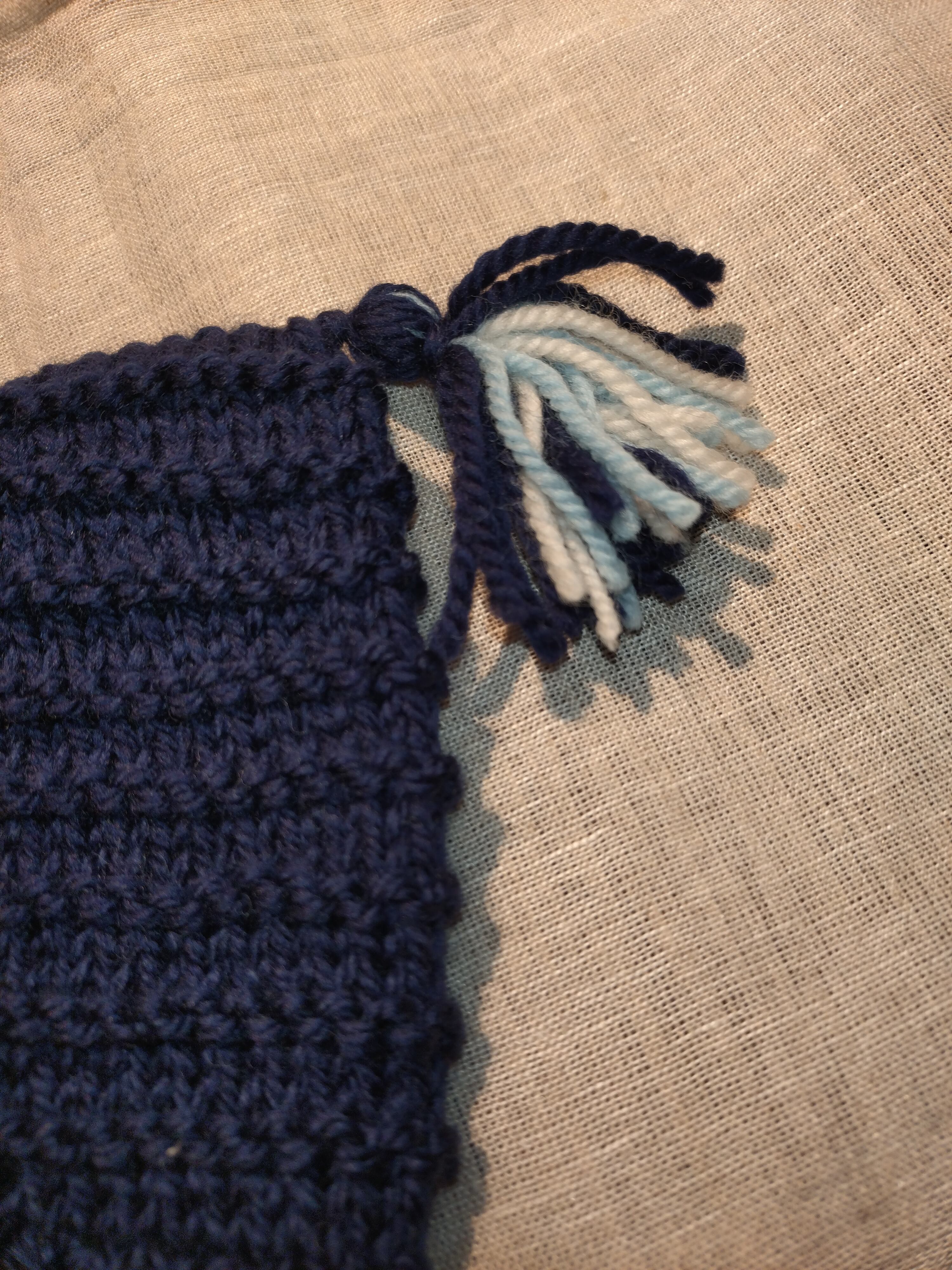 こちらは、ネイビーの帽子で、可愛いフリンジ付きです。